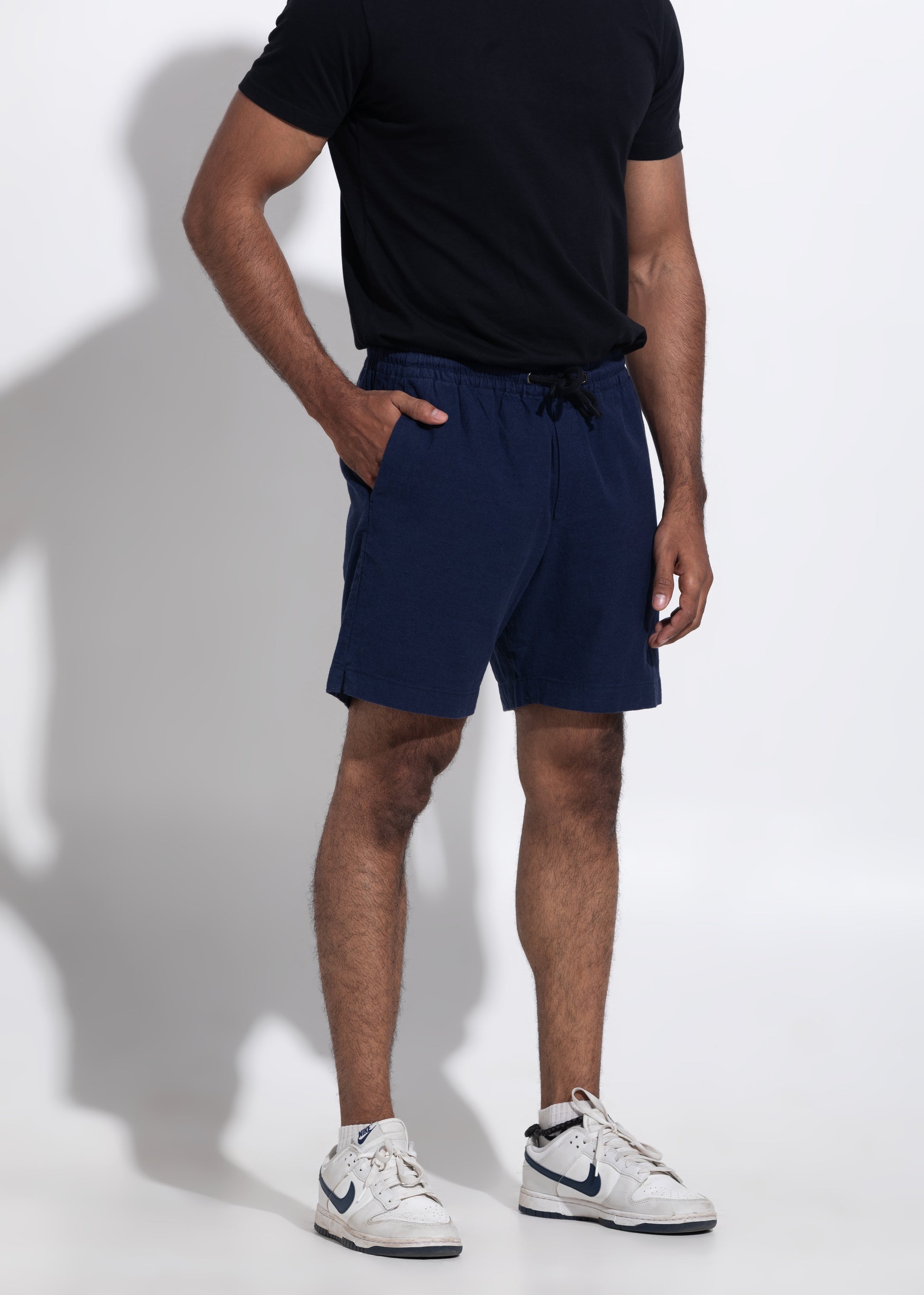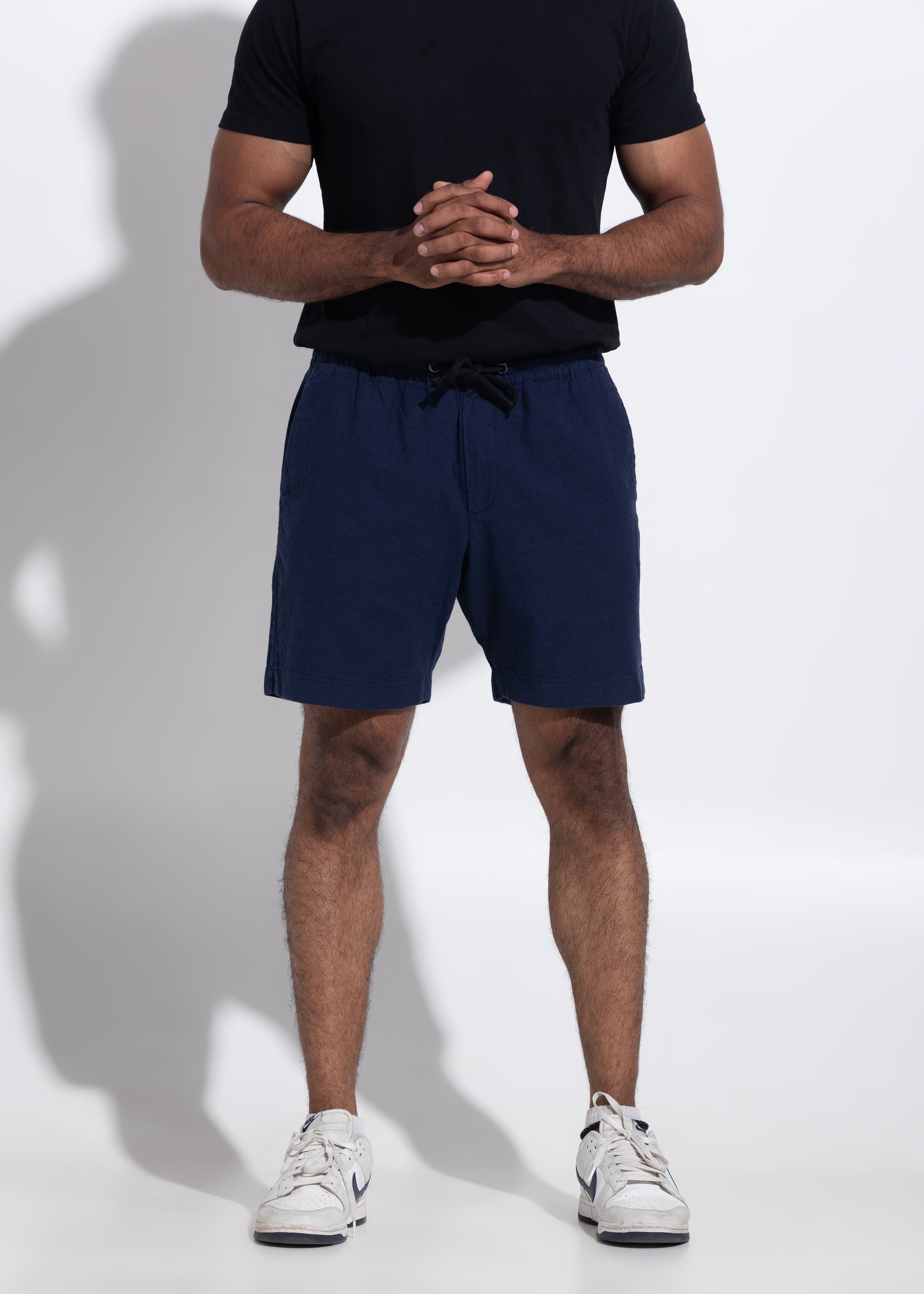 Drawstring Linen-Cotton Blend 7" Inseam Shorts with stretch
