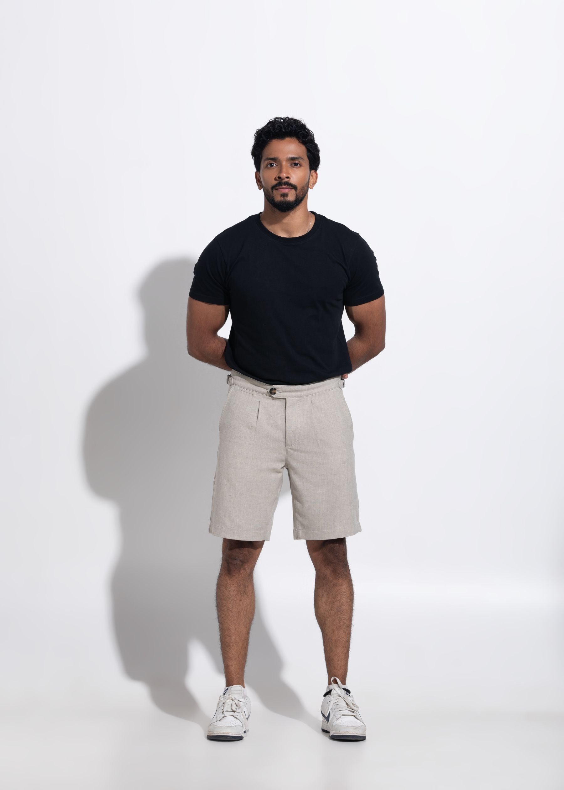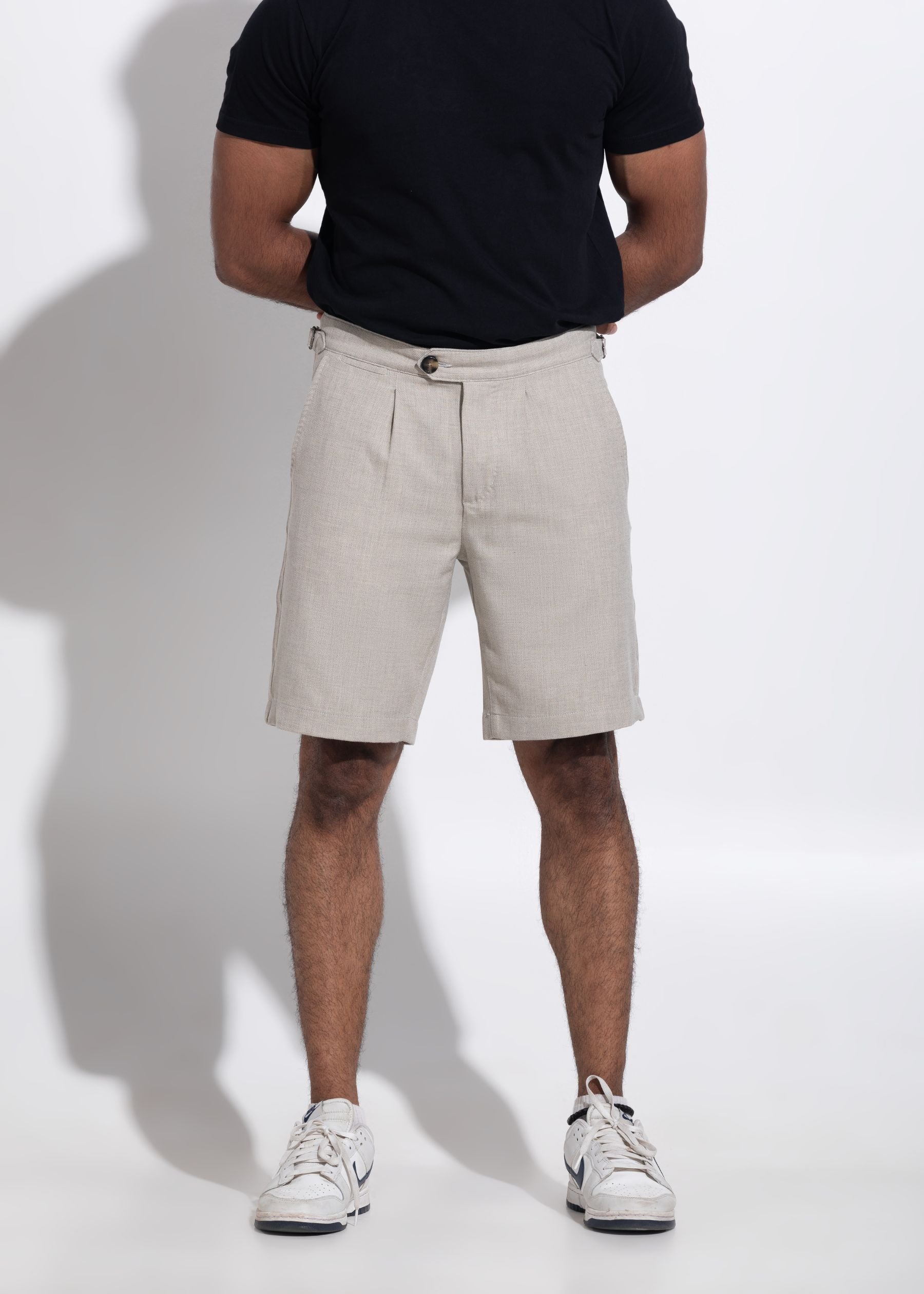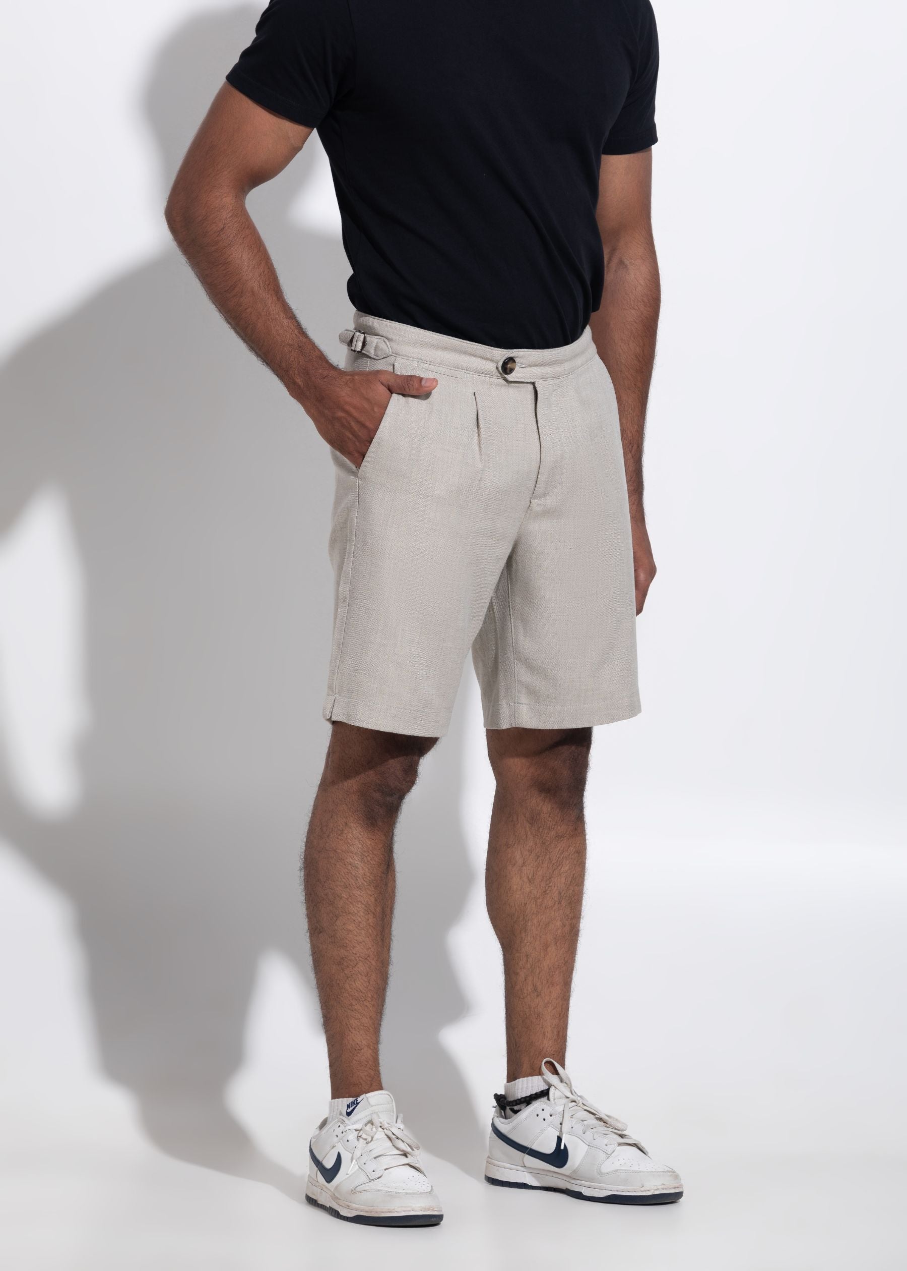 Pleated Chino 9" Inseam Cotton-Linen Blend Shorts with Stretch